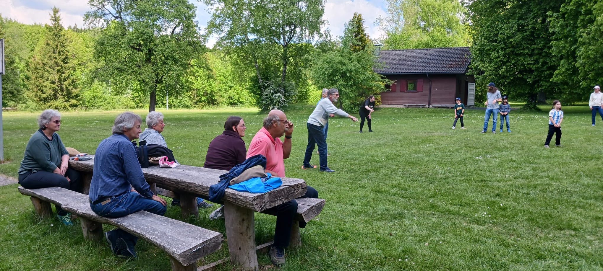 ein Spielfeld im CVJM Garten aufgebaut und die entsprechende Ausrüstung, wie Bälle und Schläger mitgebracht.
